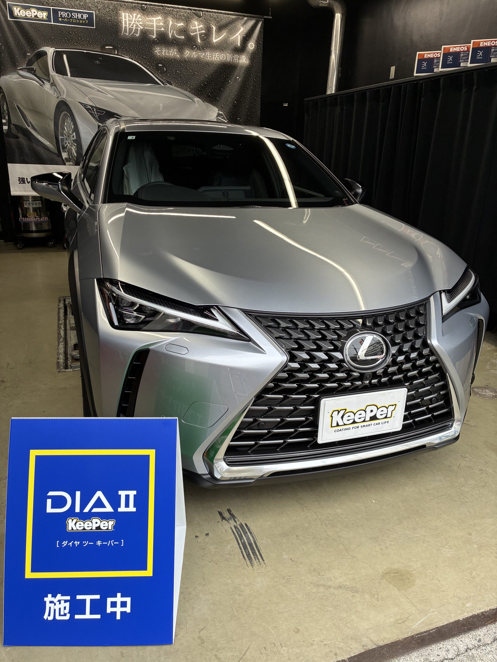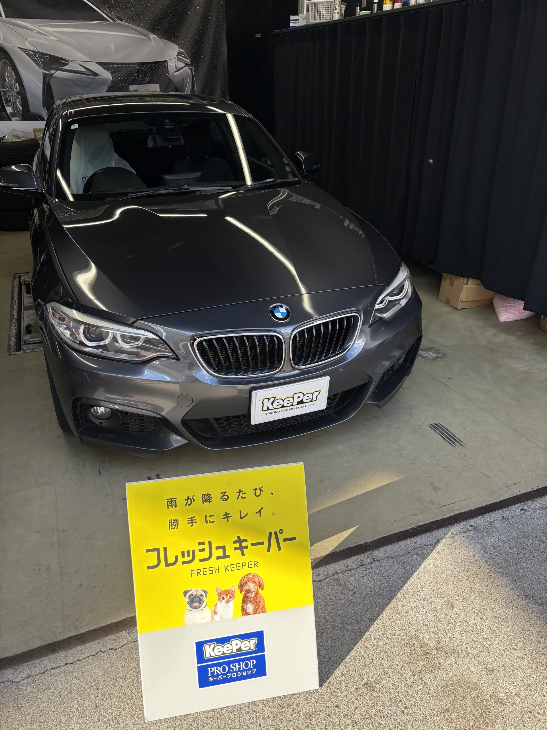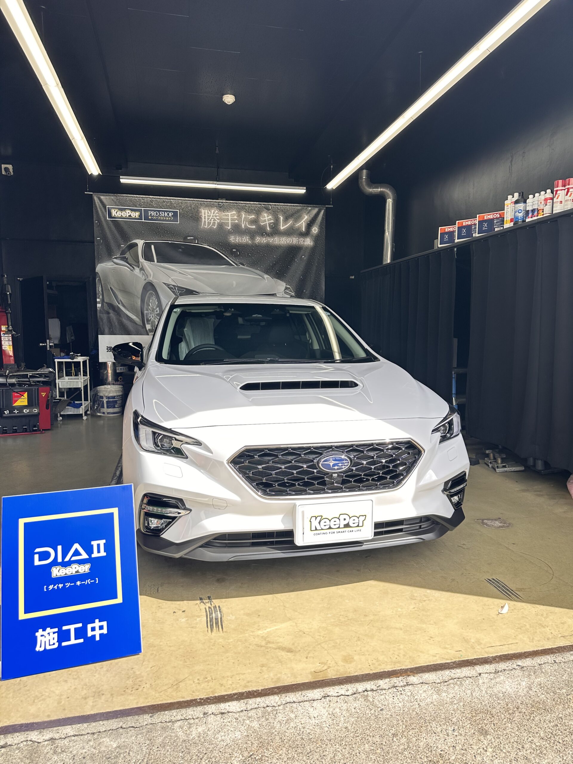当店では、清掃を徹底した雨のかからない施工スペースにてキーパーコーティングを実施します。